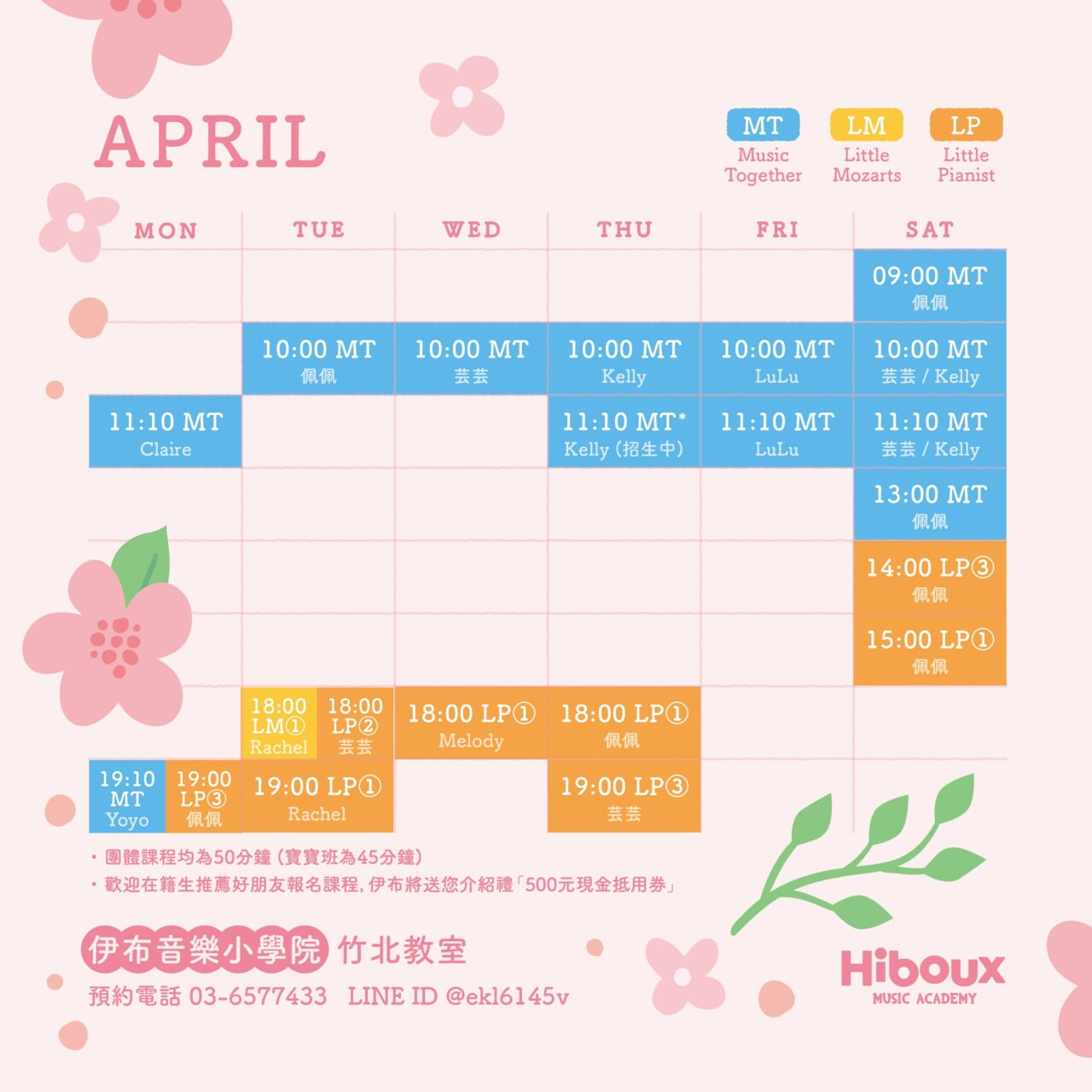 4月 / April 團體班課表