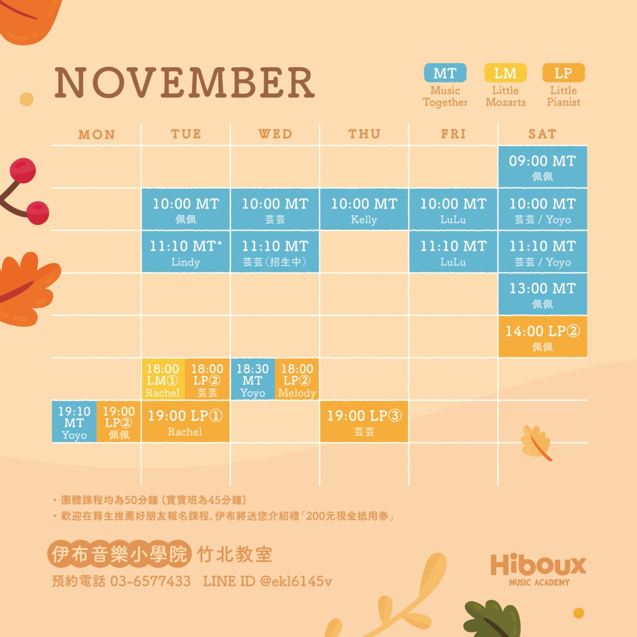 11月 / November 團體班課表
